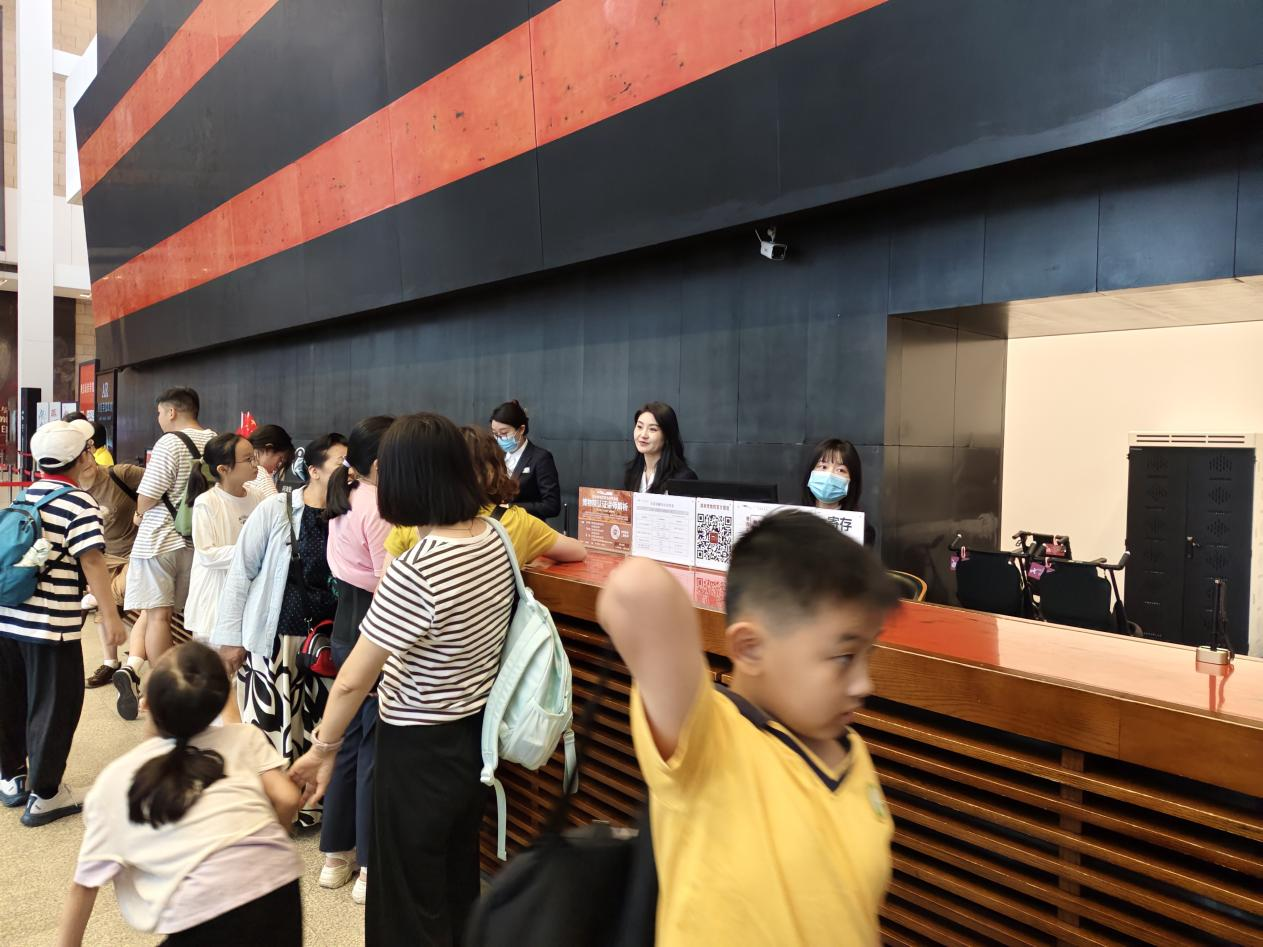 客流高峰时,全馆立即切换“高效服务模式”:票务员快速检票并贴心提醒,安检员严谨排查违禁物品还帮忙搬运大件物品,安全员在易拥堵区域分流及主动指引;督导员则全盘调度协调加开通道,确保参观井然有序。即便到了午餐时段,大家也只是轮流快速吃饭,半小时不到便回到岗位,没人抱怨“累”,只想着“别让观众等太久”。