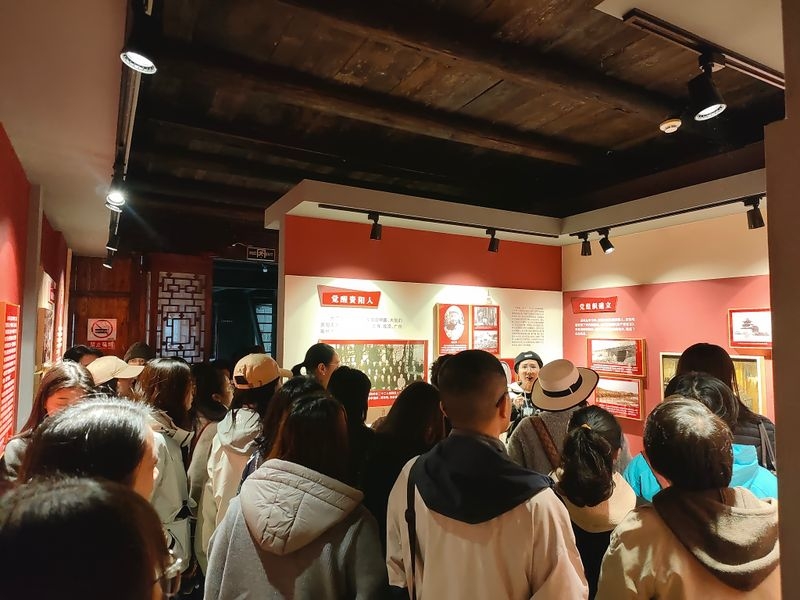 大家在丰堆仑革命旧址工作人员的引导下,依次参观了各个展厅。一楼展厅里一幅幅黑白照片、一件件斑驳的革命文物,仿佛将大家带回到了那个战火纷飞的年代。二楼复原的作育学校课堂场景,桌椅整齐,黑板上还留有当年的粉笔字迹,让人感受到革命先辈们在艰苦环境中坚持办学、培育革命人才的坚定信念。