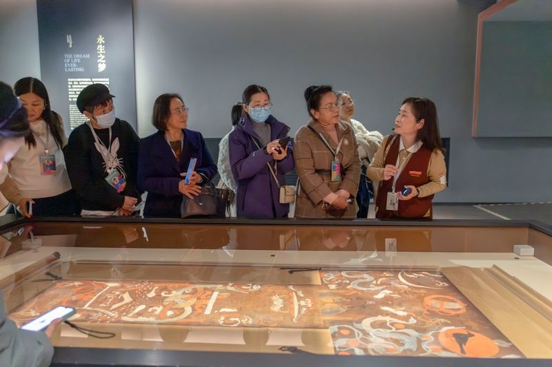 活动开始,湖南省博物馆的志愿者代表为湖北美术馆的志愿者们进行了“长沙马王堆汉墓陈列”的精彩导览。通过详细的讲解,湖北美术馆的志愿者们深入了解了马王堆汉墓的历史背景、文物价值及文化内涵,对中华文明的博大精深有了更加直观的认识。