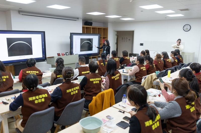 活动分为马王堆展厅导览、大漆美育课程两大环节,湖南省博物馆30余位优秀志愿者及湖北美术馆20余位志愿者代表热情参与。