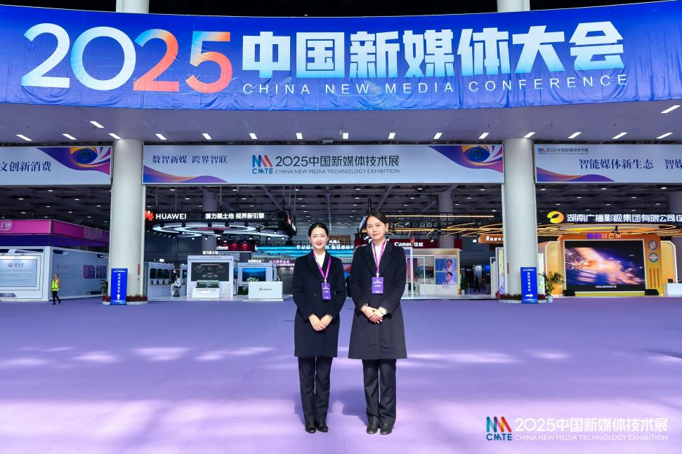 11月11日,由中共中央宣传部指导、中华全国新闻工作者协会、湖南省人民政府主办的“智能聚力 系统变革”2025中国新媒体大会在长沙开幕。湖南省博物馆特别委派教育员苏嘉仪、杜佳莹助力大会重点活动——2025中国新媒体技术展,为参展领导、嘉宾及观众提供专业讲解服务。
