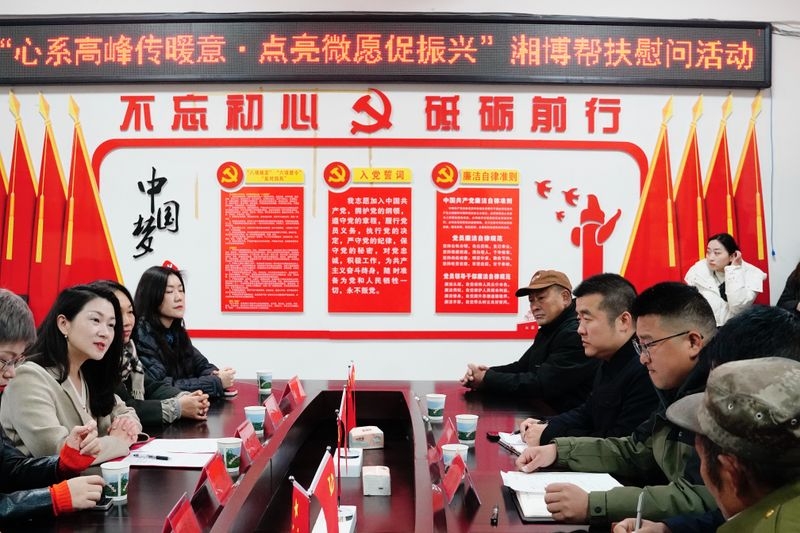 12月5日上午,“追忆先辈寻初心 党建帮扶促发展”帮扶慰问活动在高峰村村民委员会会议室举行。高峰村村书记熊宾代表村支两委和全体村民,向湖南省博物馆慰问帮扶团队的到来表示热烈的欢迎和诚挚的感谢。湖南省文化和旅游厅驻高峰村第一书记汤超在讲话中指出,湖南省博物馆选派优秀骨干力量扎根基层,始终关心、关注工作队的驻村帮扶工作,牵挂基层群众需求,精准对接村民日常所需、所盼,用实打实的举措为高峰村办实事、解难题,切实提升了村民的获得感和幸福感,这一系列行动充分体现了湖南省博物馆作为文化单位的责任与担当,彰显了党和政府对基层群众的关怀与温暖。